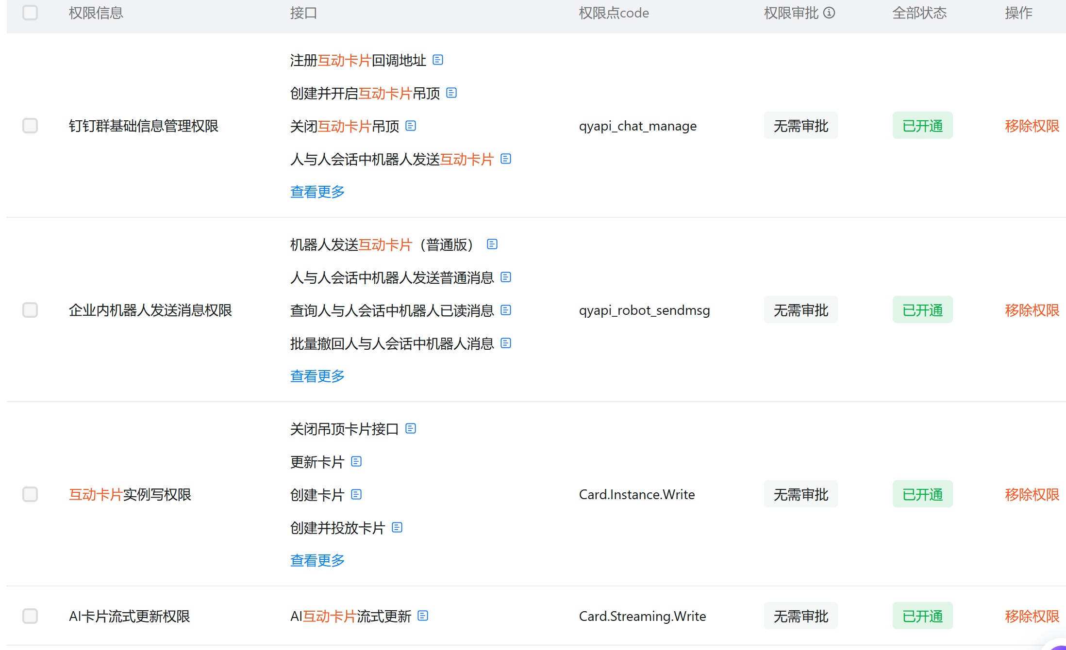另外在钉钉开发者平台开通互动卡片权限